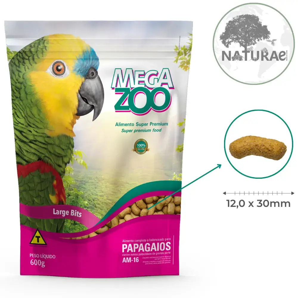 Ração Extrusada Para Papagaios Large (Am16) MEGAZOO 600g